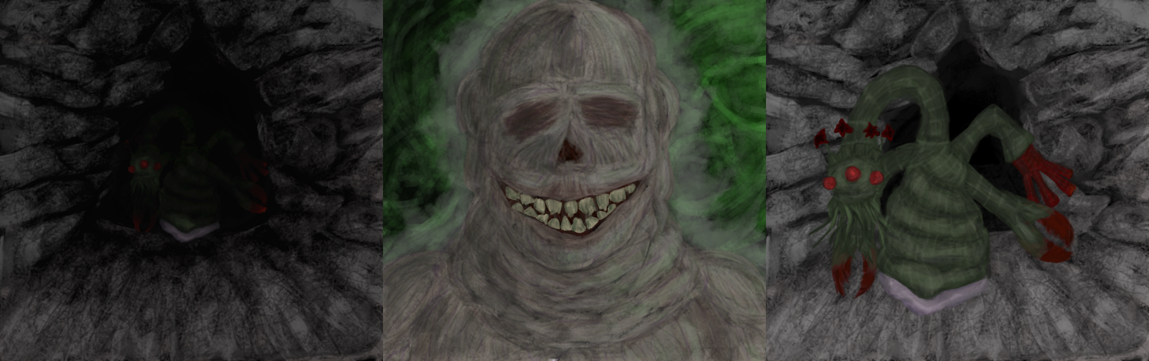 A triptych, on sailcloth, washed upon the shores of an island near R’lyeh. Found and donated to The MOLLUSC Department by one Mr. Edward Hyde.